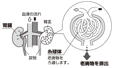 腎症は進行すると血液中に有害な老廃物がたまり、尿毒症という命にかかわる重篤な症状になります。
